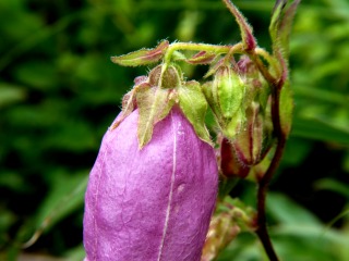 ホタルブクロとヤマホタルブクロの違いは、萼片の間に付属片が反り返っているのがホタルブクロ、この写真は付属片が無く、ヤマホタルブクロです。