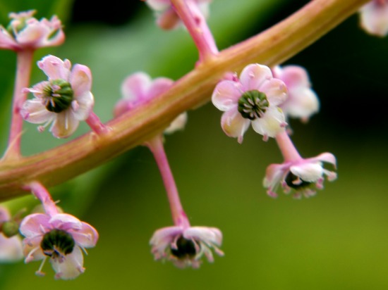 ヨウシュヤマゴボウの茎から花柄を伸ばして咲くのは、花びらに見える萼です。