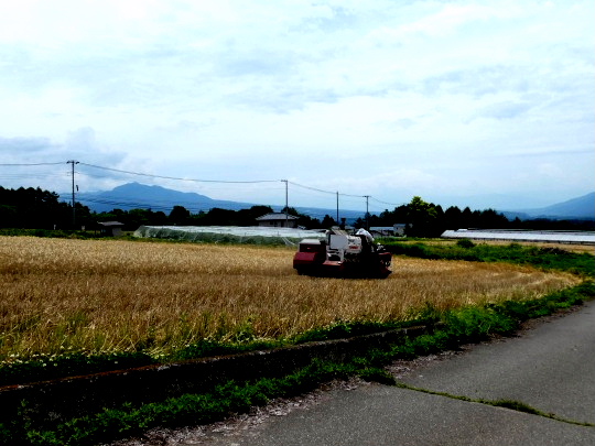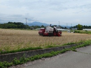 麦の刈取りは、いろんな刈取り方式があるようです。今日見た刈取りは茎を残して実だけを刈り取っていました。茎は蕎麦の肥料になるのでしょうか?・・・