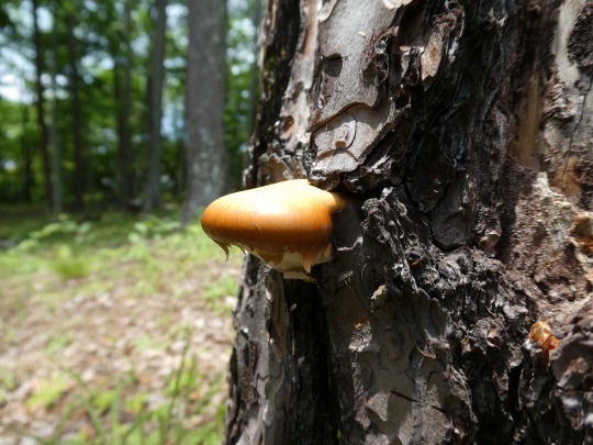 切り株から柄が無いキノコが生えていました。