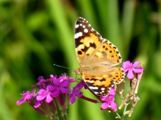 昨日、オレンジ系の綺麗な蝶が、ムシトリナデヒコの蜜を吸いにやって来ました。後翅に斑紋があり、ヒメアカタテハのようです。