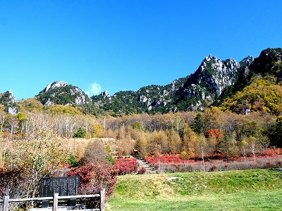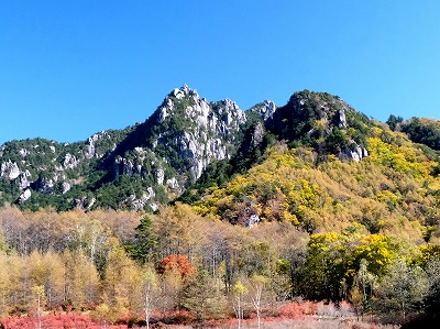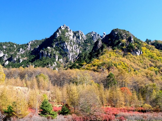 「みずがき湖」の紅葉を観て帰るつもりでしたが、紅葉には少し早かったようです。ここから標高差570メートルほど高い、「みずがき山自然公園」まで行って紅葉と瑞牆山の奇岩を観て来ました。