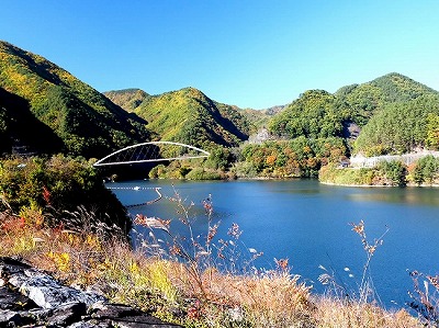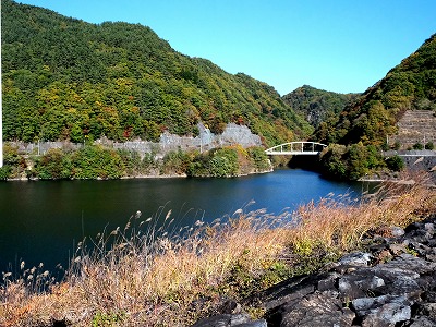 瑞牆山自然公園の帰り道は本谷川渓谷沿いの紅葉を楽しんで「みずがき湖」に戻って来ました。