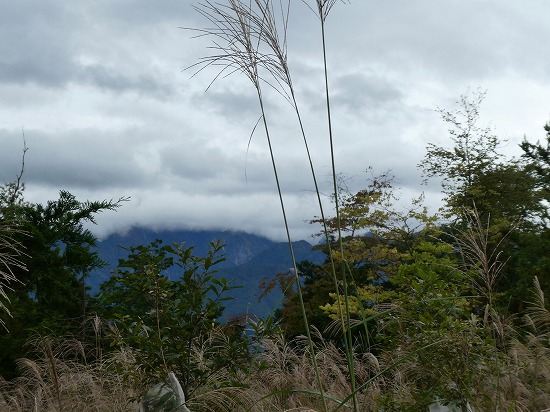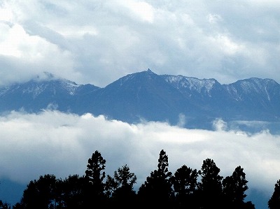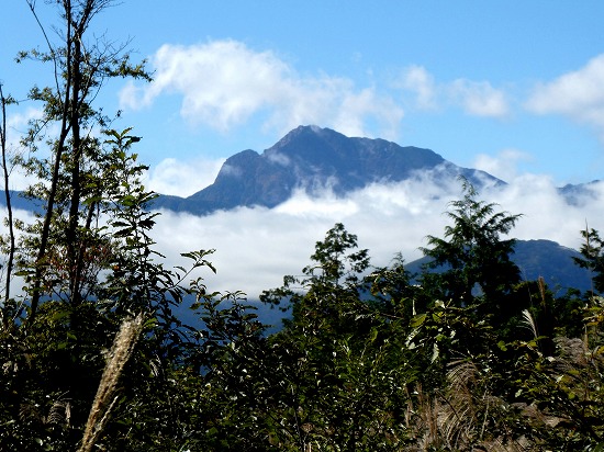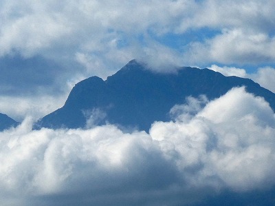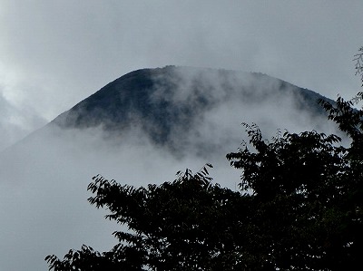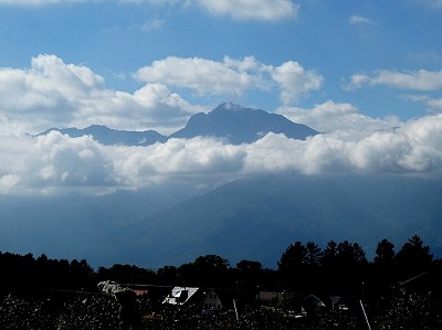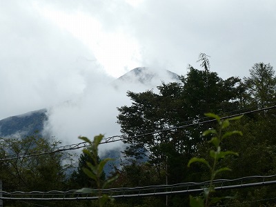 朝、雨が降っていましたが、午後になって雲間から編笠山の頭が見えました。