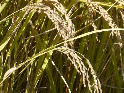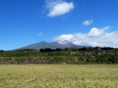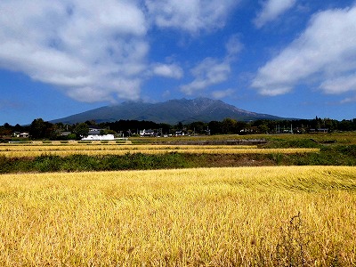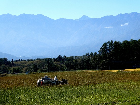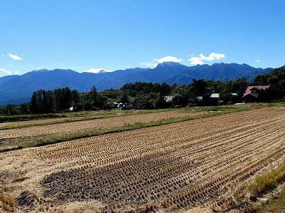 八ヶ岳は順光で空が青く映りました。稲穂は刈取り間近です。