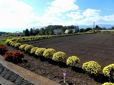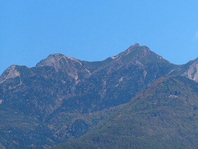 玄関先デッキの修復材料を購入するためホームセンタ―に行く前に三分一湧水公園近くの畑に寄り、甲斐駒の秋らしい景色を撮ってみました。