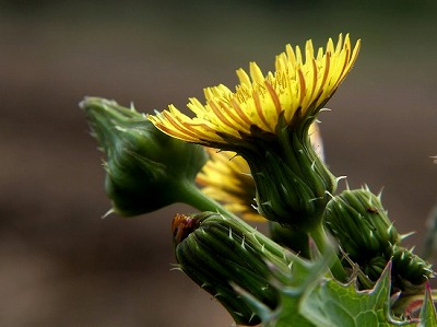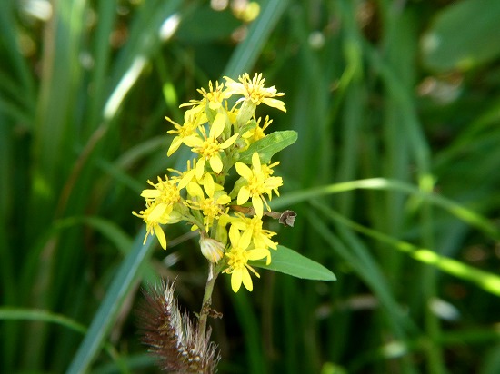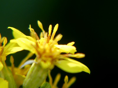 道端にきれいな黄色い花が穂状に咲いていました。花はベンケイソウ科のキリンソウに似ていて、秋に咲くことから「アキノキリンソウ」とついています。
