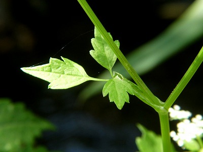 川筋の日陰に小さな白い花が咲いていました。葉が「セリ」に似ていて山に咲くことから名前がついたようです。