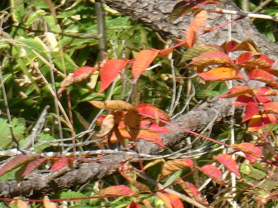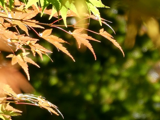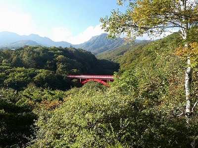 赤い橋まで登ってみましたが、夏の濃い緑からは幾分黄色味を帯びていますが、紅葉はもう少し後になります。