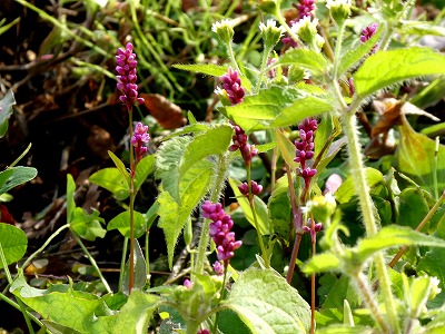 花が少ないこの時期、春から秋まで花を咲かす「イヌタデ」赤い米粒にたとえ「アカマンマ」と呼ぶこともありますが、植物の世界では「イヌ・犬」は役に立たない、食べられないの意味のようです。