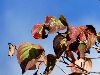 我が家に隣接する河川敷の「ハナミズキ」、桜の後に咲く花もきれいですが、秋の紅葉も味があります。