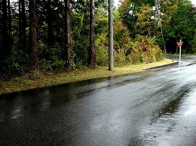 本谷川沿いの道路は狭く運転に細心の注意が必要です。