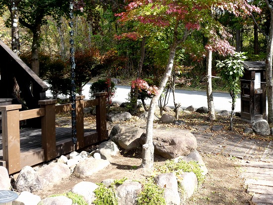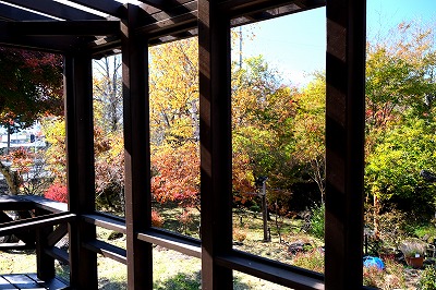 手作りデッキから望む紅葉