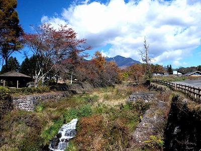 三分一湧水公園に沿って流れる「高川」を渡ると「水の里公園」になり、落葉樹が紅葉していました。