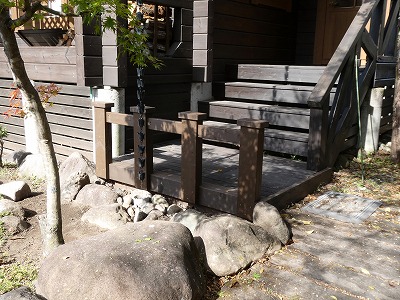 玄関前の柵が傷んできたため、作り直ししました。柵とレインチェ―ンの間が近く雨で傷みやすいため10センチほど移動しました。