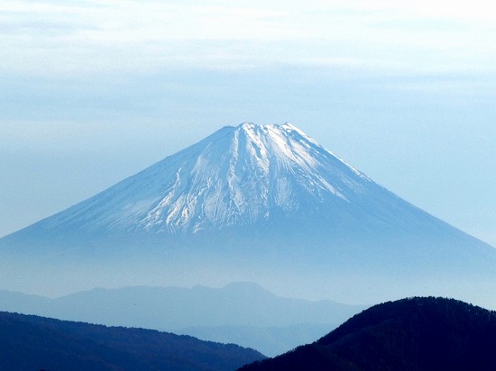 長坂から見た今日の富士山は裾が白く霞んでいました。