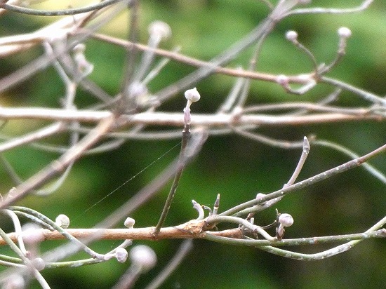 タンポポの丸い冠毛の側に種を付けた冠毛が少しだけ残っていましたので写して見ました。