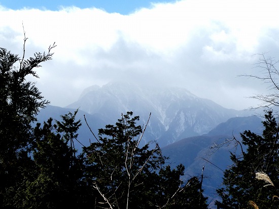 雪雲の中にうっすら甲斐駒ヶ岳