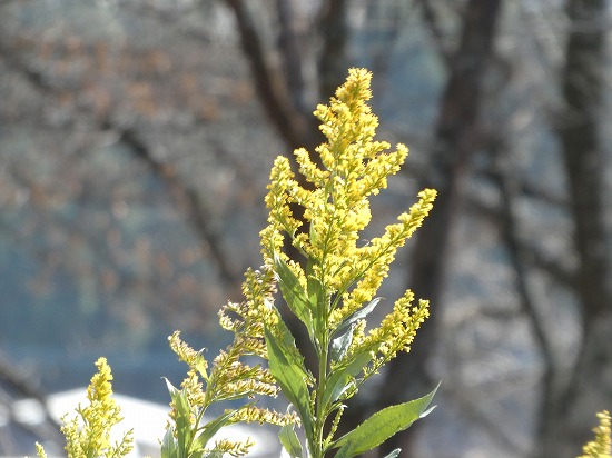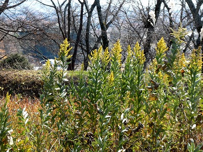 谷戸城跡の一角に草丈が高く黄色い花が咲いていました。花期が10~11月とありますので「セイタカアワダチソウ」と思われます。