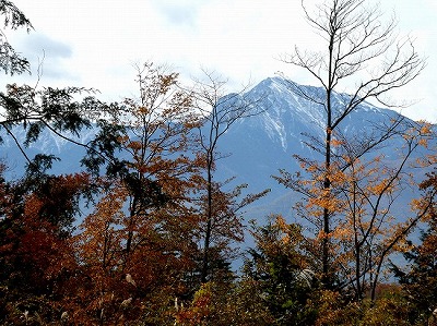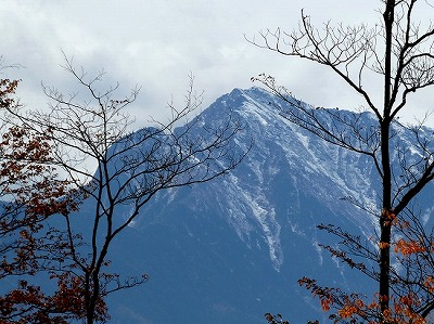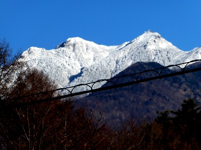 今日は曇っていましたが、雪を戴いた甲斐駒ヶ岳が見えました。