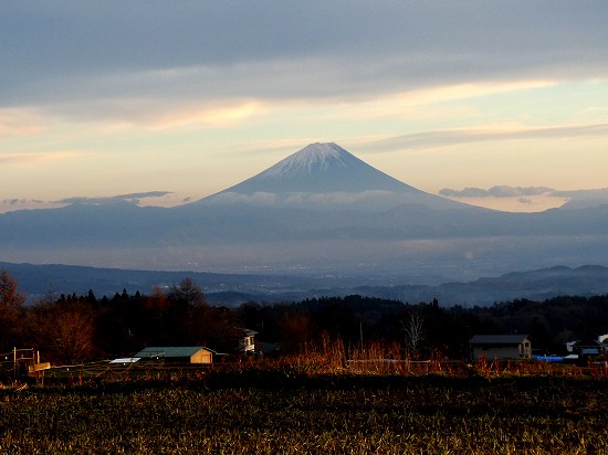 雲が多く弱い西日ですが富士山を浮かび上がらせていました。