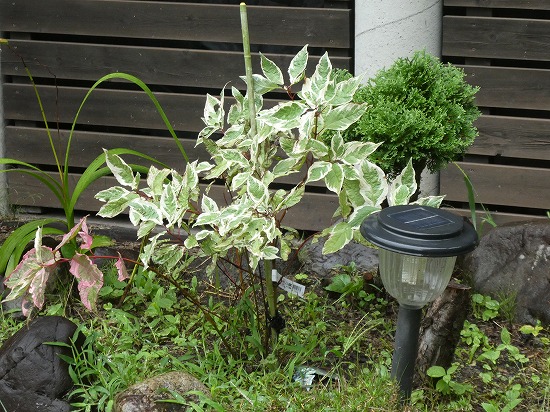 葉に白い外班が入り美しい庭木です。