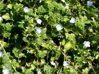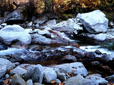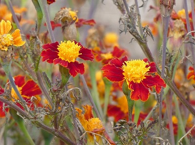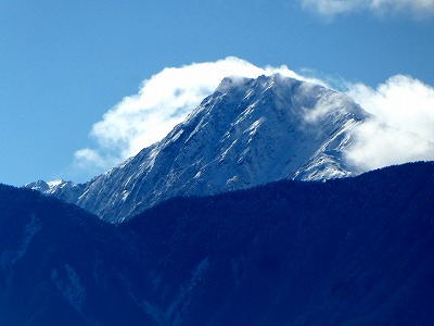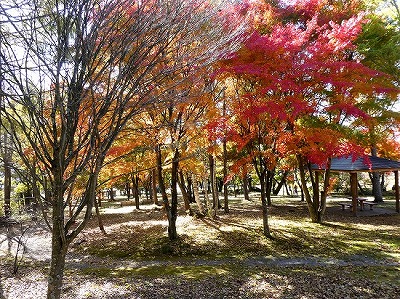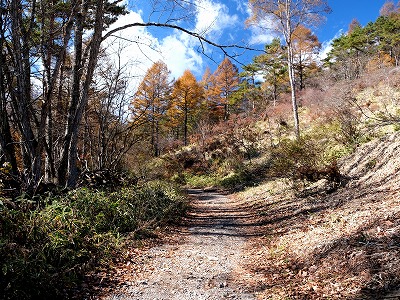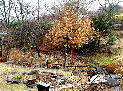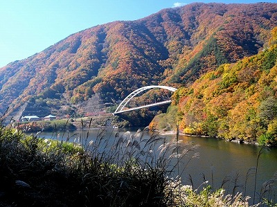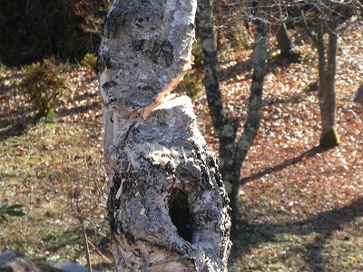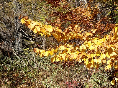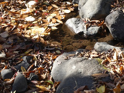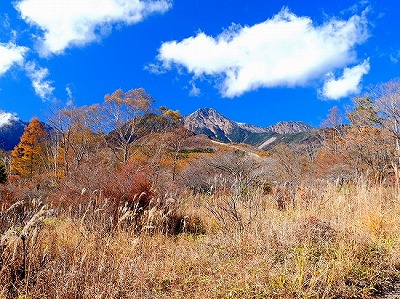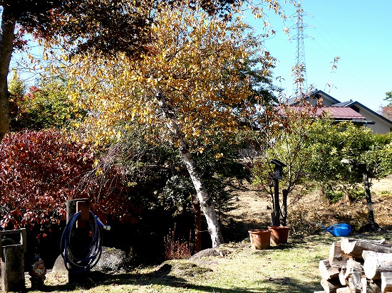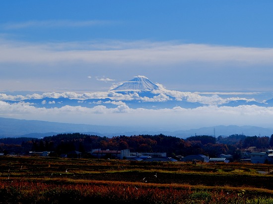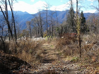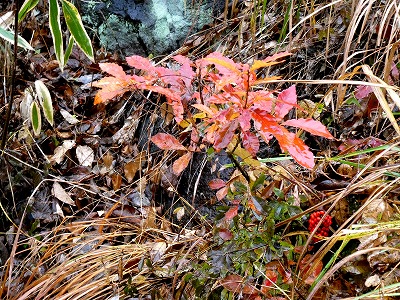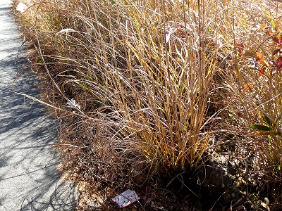 散歩道にススキが白い穂をなびかせていました。オギ(荻)とよく似ていて間違いやすいです。ススキは株立ちですが、密生して生えていると下草で見分けが難しいです。秋も後半になり下草が枯れると株立ちであることがわかります。