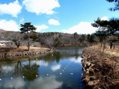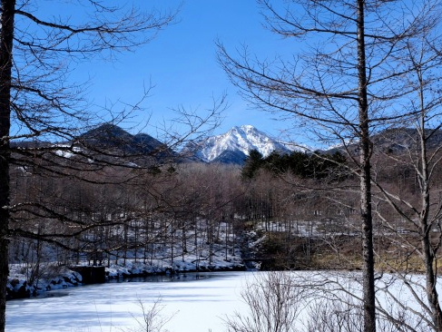スキー場脇に小さな池「美しの池」があります。いまは氷の上に雪が積もっていて美しい景色を見せています。