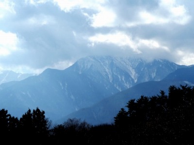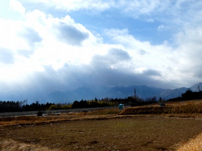 南アルプス連峰は厚い雲が流れ込んでいます。
