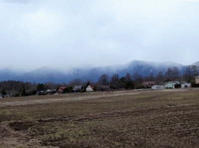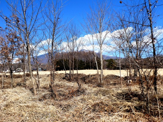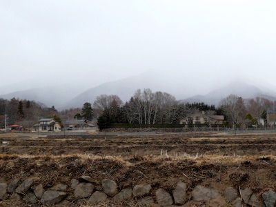 出掛けたついでに三分一湧水公園下の畑に寄ってみましたが、北風が冷たく寒かったです。大雪の後2~3日気温が高めで、南斜面の畑は雪が消えていました。 |