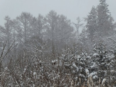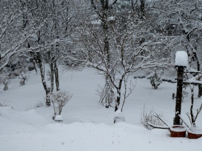 昨日までの茶色い冬景色が、一夜にして銀世界になりました。