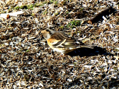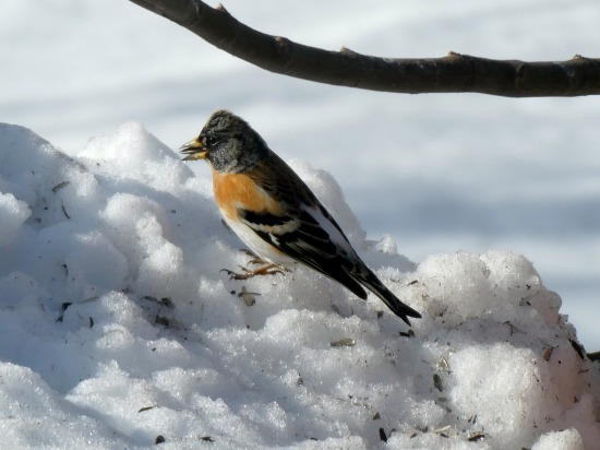 昨日は餌を求めて珍しい野鳥がやって来ました。オレンジと黒を主体とした美しい色彩の「アトリ」です。