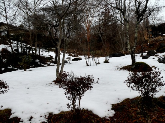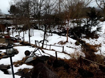 雪は25センチくらい積もり、歩かないところは白いままですが、雪解けは大分進んでいます。