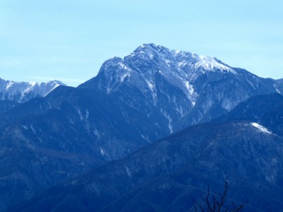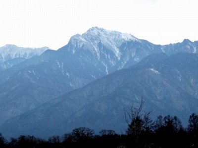 逆光は薄雲に遮られ、甲斐駒、北岳の厳しい厳冬期の雪壁が見えました。