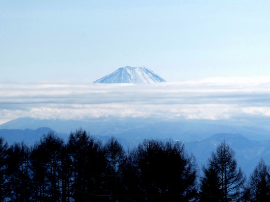 小海線の下を走る泉ラインからの帰り道、富士山が樹木越しにきれいに見えました。
