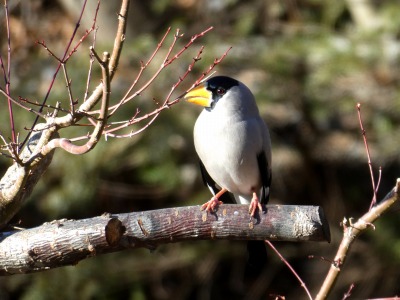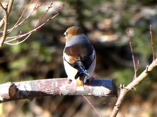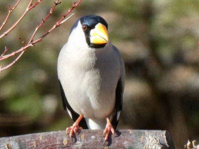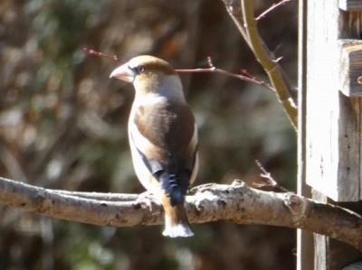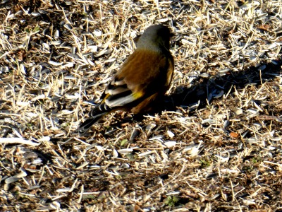 太くて大きなクチバシのシメ、今シーズン初めて庭に姿を見せました。