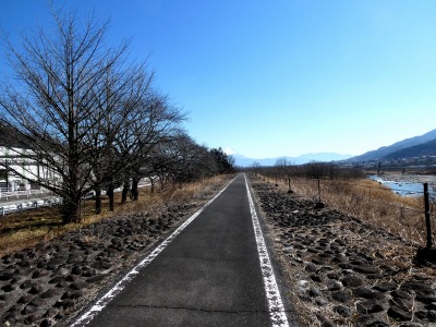 釜無川沿のサイクリングロードより、きれいな富士山が見えています。