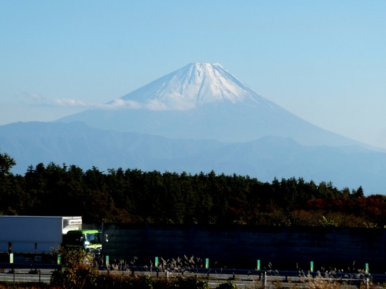 中央道付近から望む。今日の富士山は霞んでいましたが、優雅な姿を見せていました。