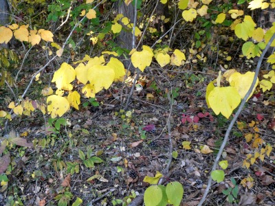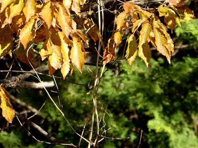 ダンコウバイの黄葉、緑葉のときは目立ちませんが、秋になると黄色い葉がどこでも目立ちます。