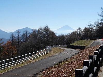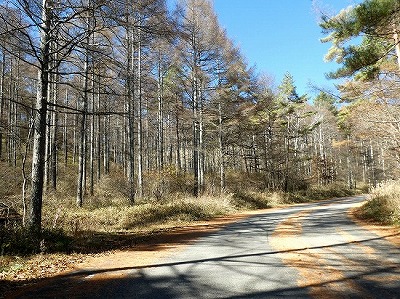 天女山への道路は山道としては走り易く、周りのカラマツは既に落葉していました。
