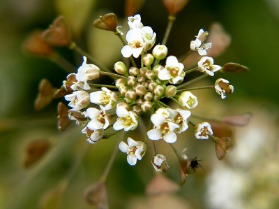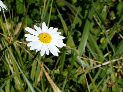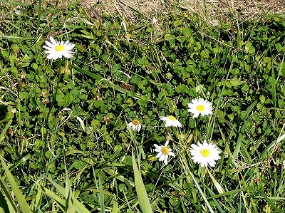 畑の一角にフランスギクによく似た、白い花びらの花が咲いていました。