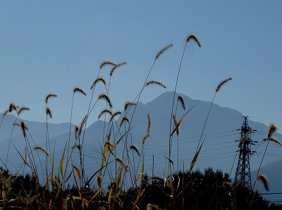 エノコログサ越しの甲斐駒は霞んだシュルエットです。