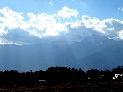 甲斐駒を覆った雲間から光るが差し込んでいました。