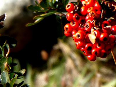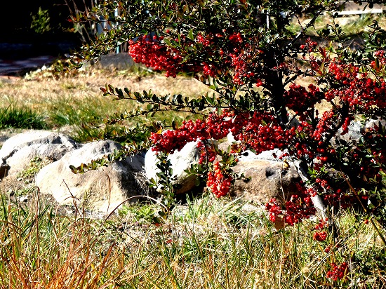 11月もあと僅か、寒冷地では写真になるような植物が見渡らなくなっていますが、民家に庭に「ピラカンサ」の赤い実が生っていました。