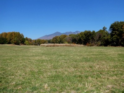 八ヶ岳を望む小淵沢町の牧草地はきれいに刈り取られていました。