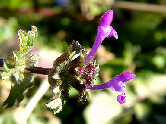 甲斐駒ケ岳広域農道沿いは、八ヶ岳広域農道(レインボーライン)より低い位置にあり、春に咲く(花期3~6月)の「ホトケノザ」が畑の隅に咲いていました。