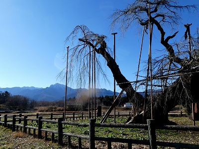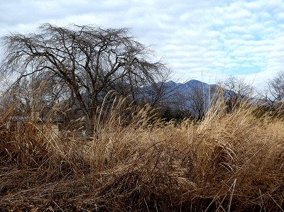 冬枯れの桜と八ヶ岳、空はうろこ模様の雲が張り出していました。