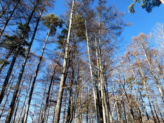 久し振りに冬の三分一湧水公園に入ってみました。真っ直ぐ伸びた樹木は葉を落し、明るい森林公園になっていました。