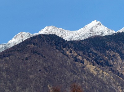 甲斐駒ケ岳はいつも逆光の写真ですが、今日は陽差しがなく、山肌がくっきり見えました。