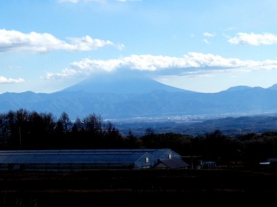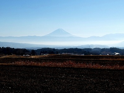 三分一湧水公園下の畑から、雪を戴いた富士山が、きれいに見えました。